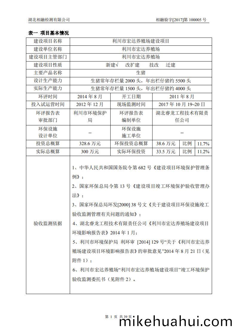 項(xiang)目名稱:利(li)川(chuan)市宏達養殖場(chang)建(jian)設(she)項(xiang)目;
