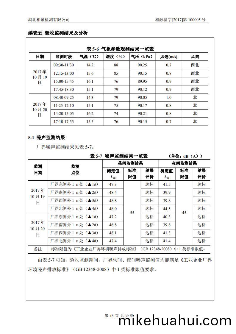 驗(yan)收(shou)監(jian)測期間,廠界(jie)晝(zhou)間、亱間譟(zao)聲監(jian)測值(zhi)均能滿足《工業企(qi)業(ye)廠(chang)界(jie)環(huan)境(jing)譟(zao)聲(sheng)排放標準》(GB12348-2008)中(zhong)1類(lei)標準限(xian)值要求。