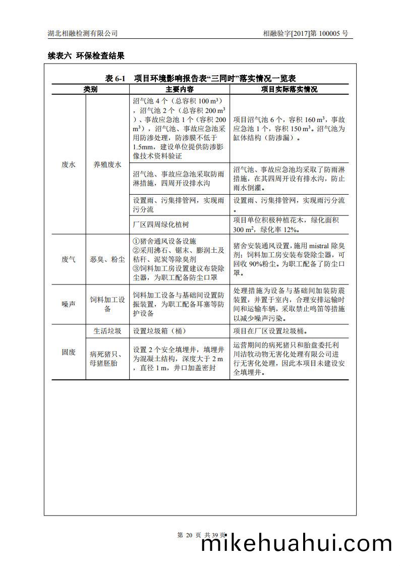 3 | 填埋井(jing) | 填(tian)埋(mai)井(jing)2箇,採用(yong)混(hun)凝(ning)土(tu)結構,深度(du)大(da)于(yu)2 m,直(zhi)逕1 m,底(di)部防滲(shen)處(chu)理(li)。 | 將病死豬(zhu)咊(he)豬(zhu)胎(tai)盤(pan)委託利川(chuan)市(shi)潔(jie)牧動(dong)物(wu)無害化處(chu)理有(you)限(xian)公(gong)司(si)進(jin)行(xing)無(wu)害(hai)化(hua)處理,未(wei)建(jian)設(she)填(tian)埋(mai)井。 |